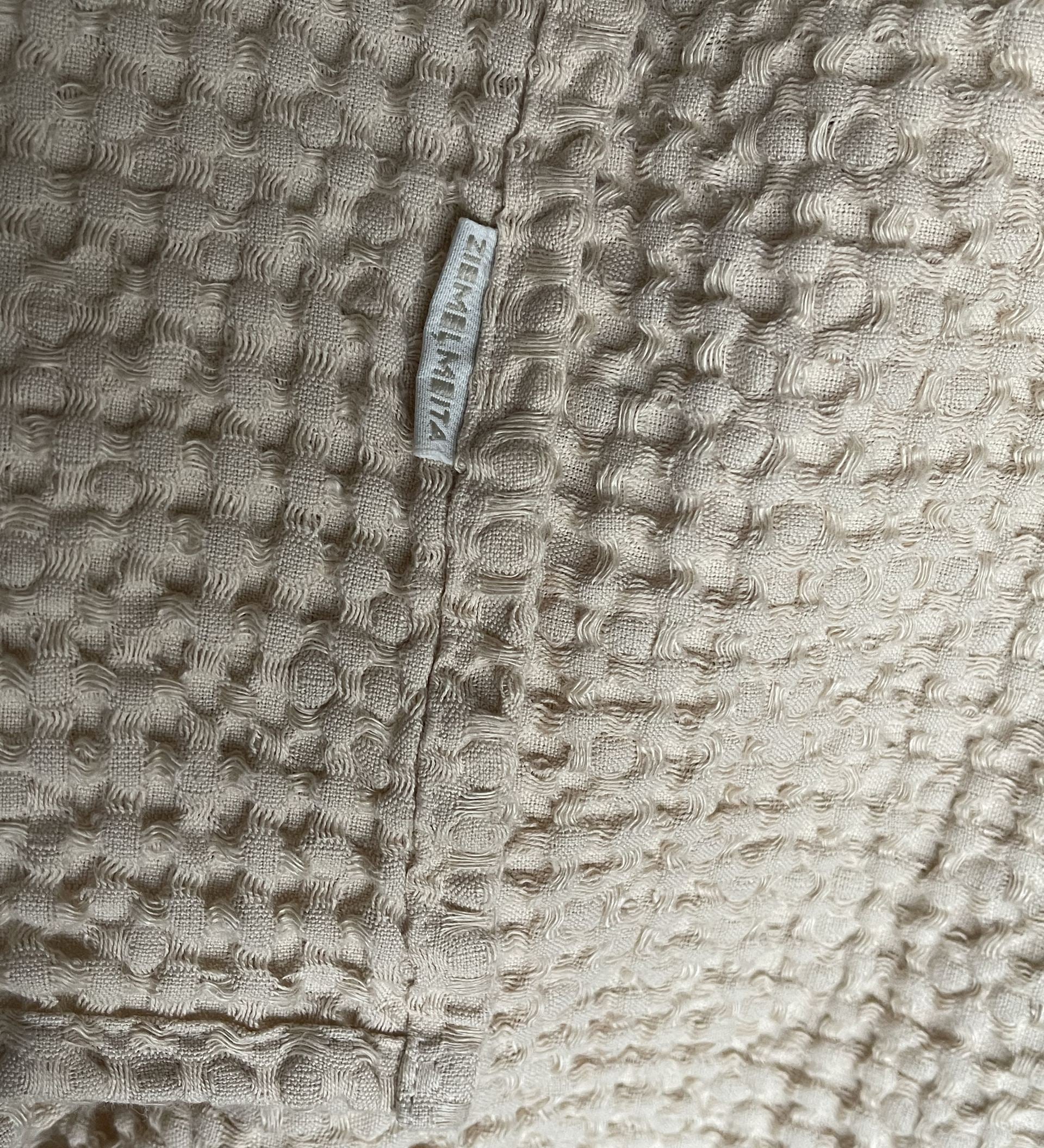 Maigi bēša toņa (vienkrāsains) lina/kokvilnas vafeļauduma gultas pārklājs, dažādi izmēri