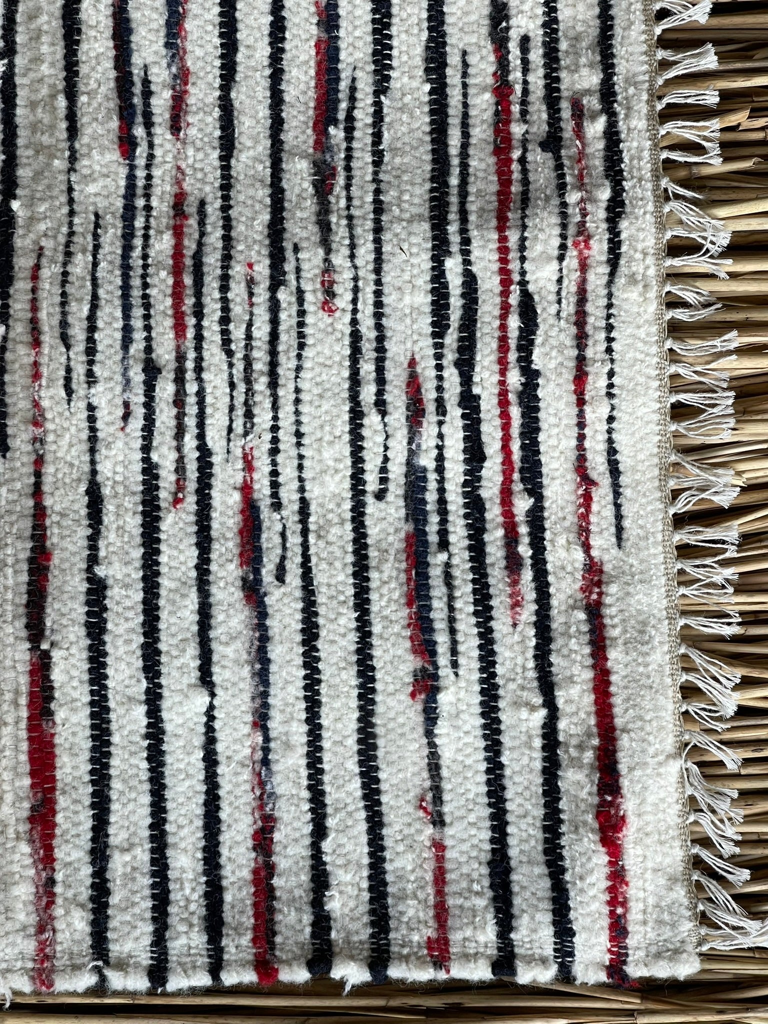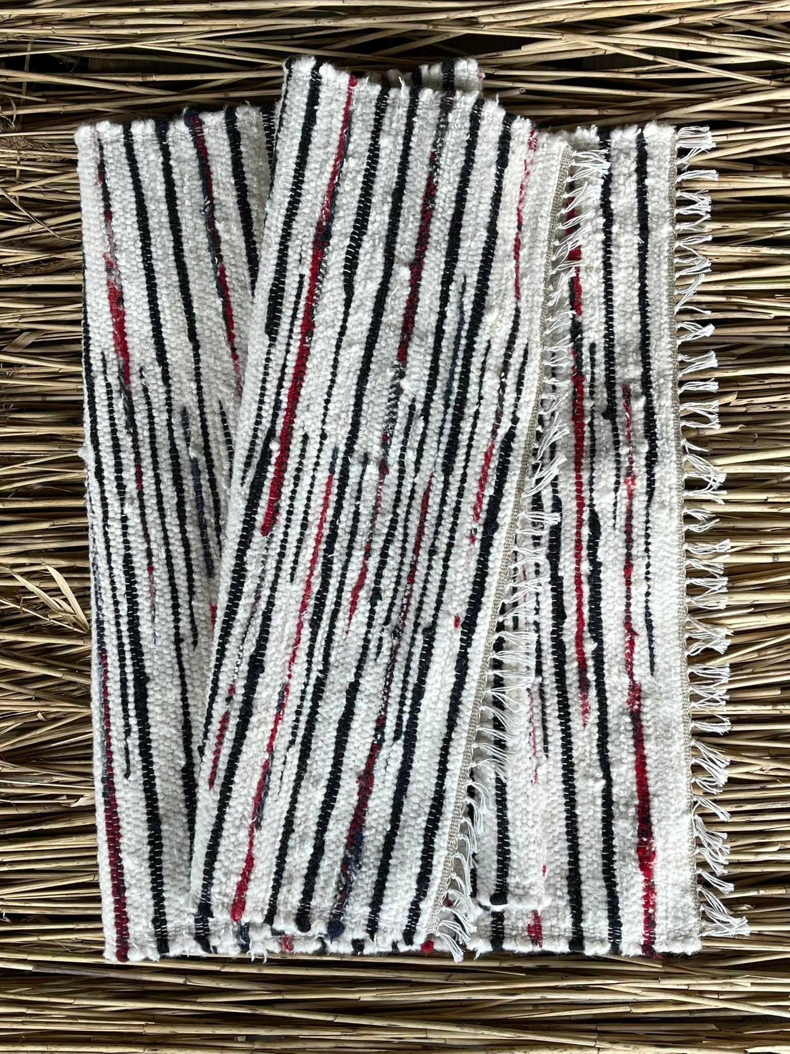 Sarkanas, melnas un baltas svītriņas, vilnas auduma grīdceliņš ~80x150cm