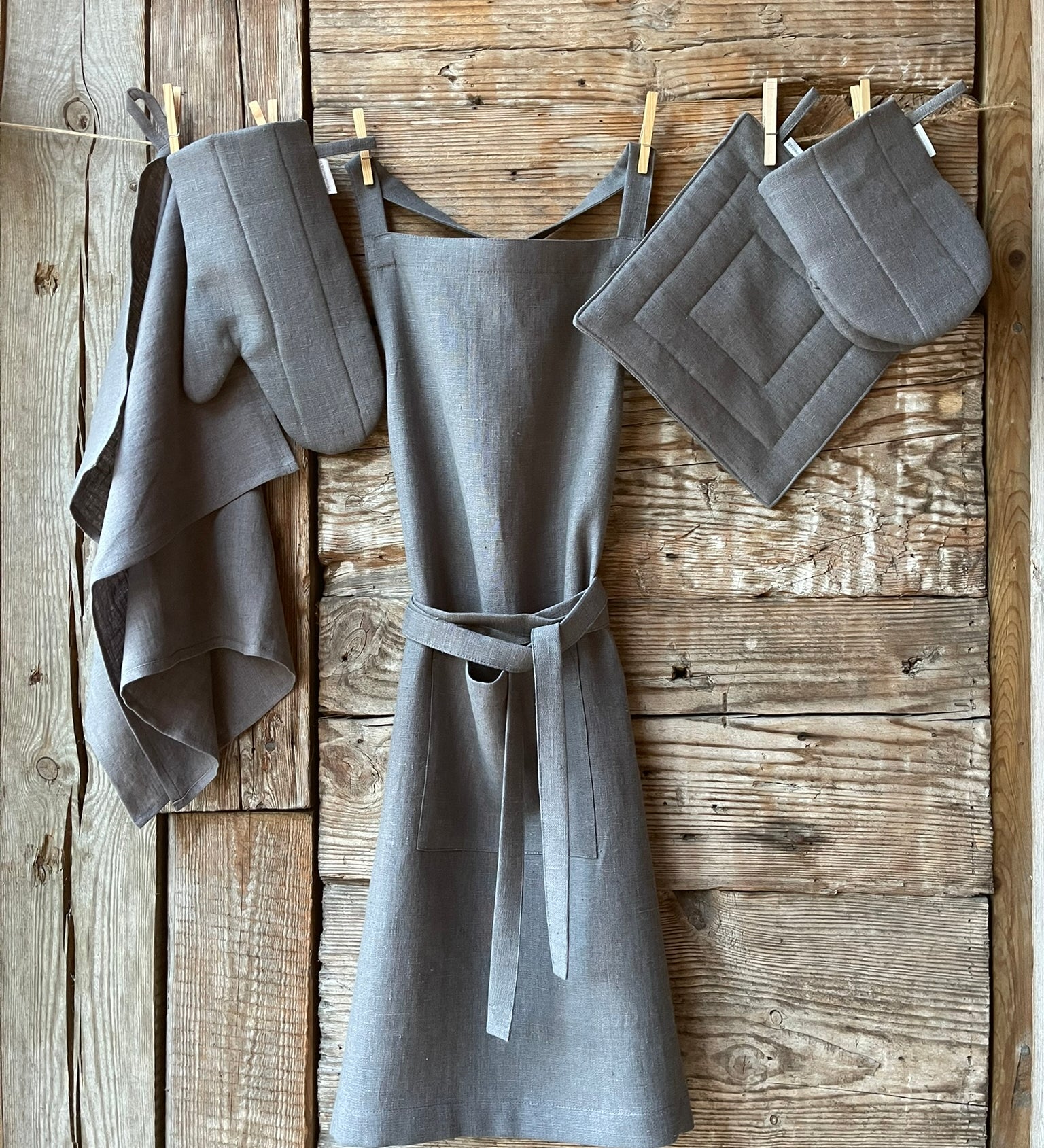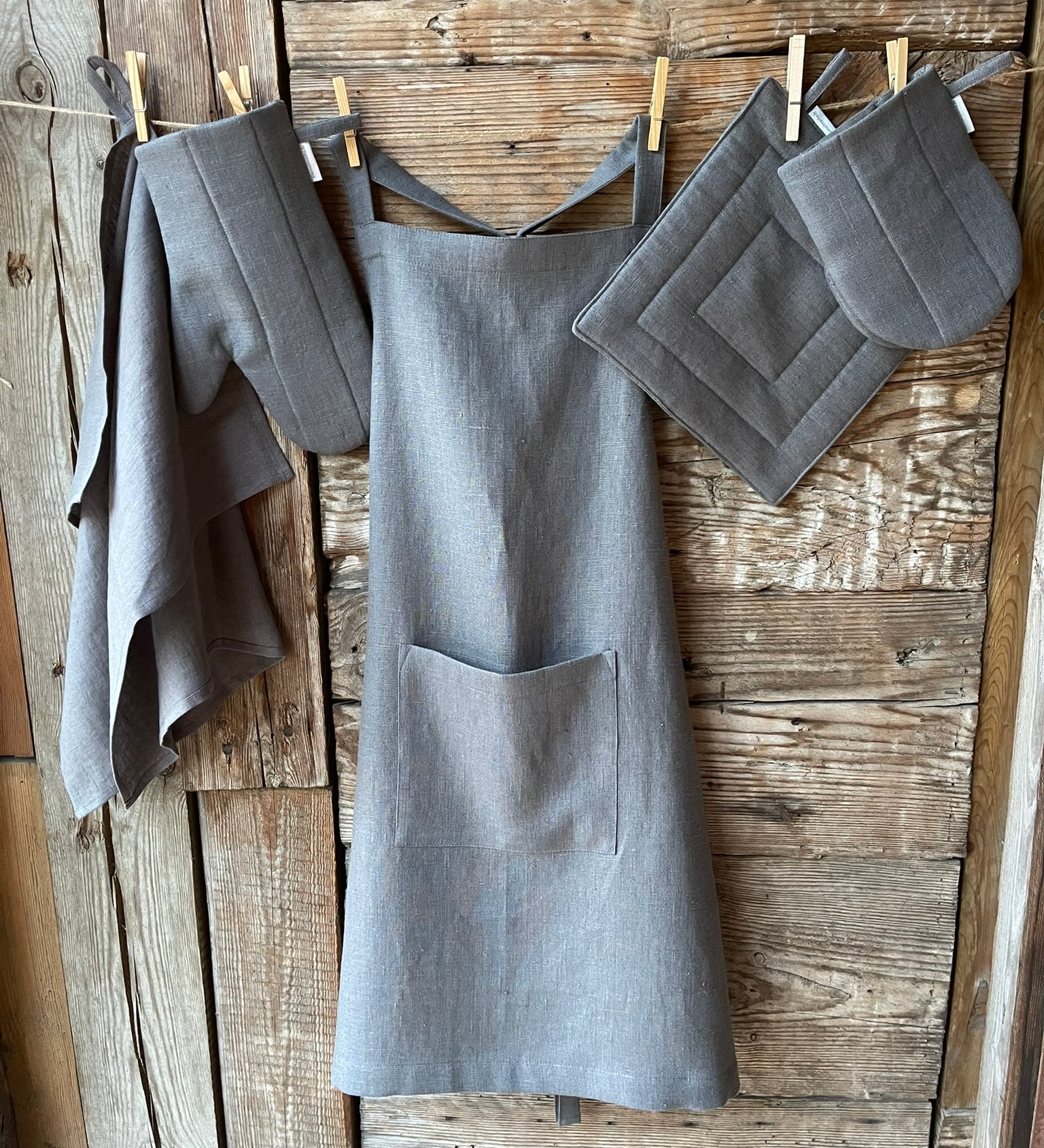 Izceļas ar savu vienkāršo eleganci un funkcionalitāti. Tie izgatavoti no dabiska lina auduma, kas nodrošina izturību, augstu uzsūktspēju un elpojamību. Dažādi modeļi ar kabatām, regulējamām lencēm un rūpīgi izstrādātiem dizainiem padara tos par lielisku izvēli gan ikdienas darbiem, gan svinīgākām reizēm.