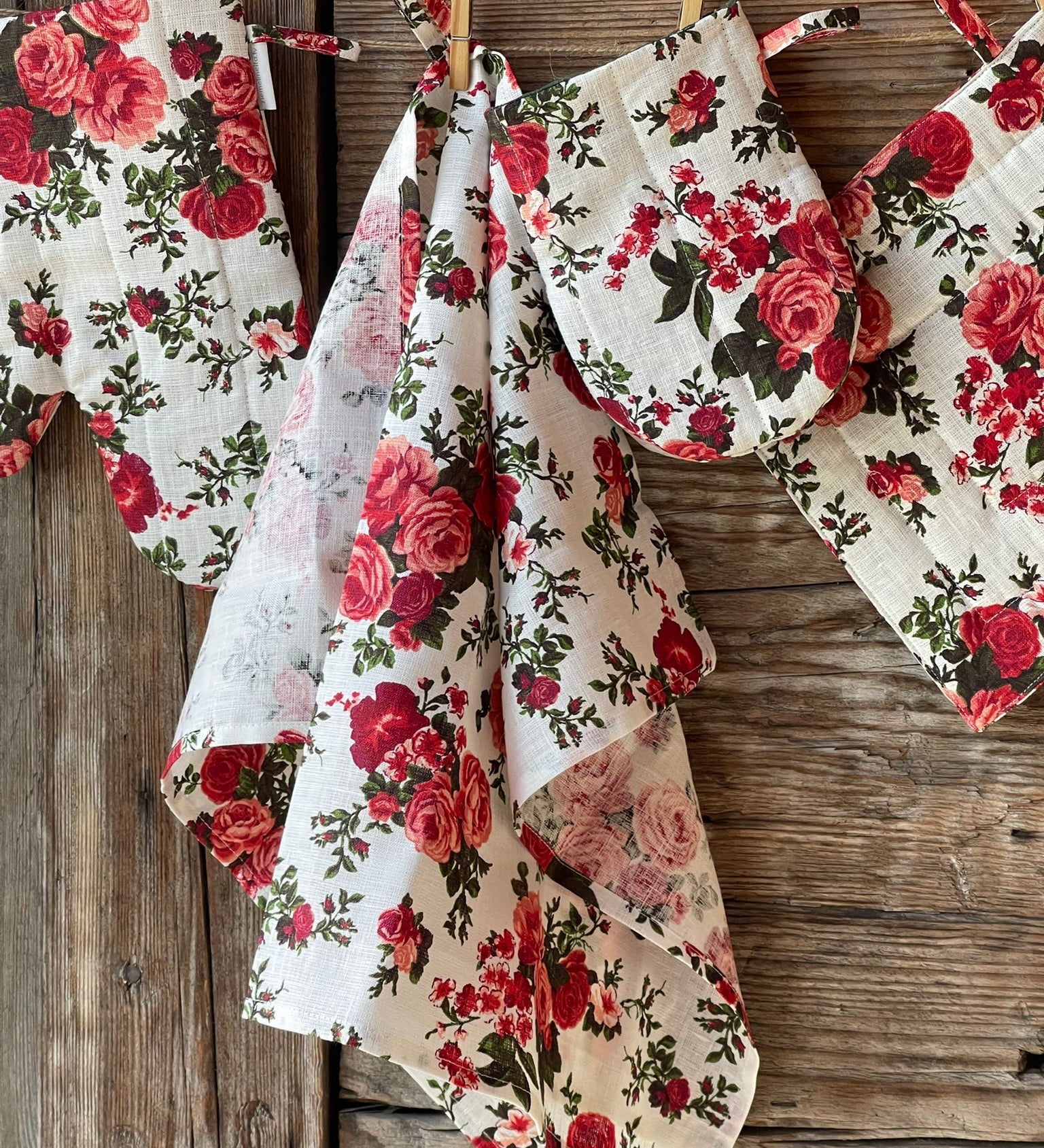 Sārtas rozes uz balta fona: 100% lina dvielis
