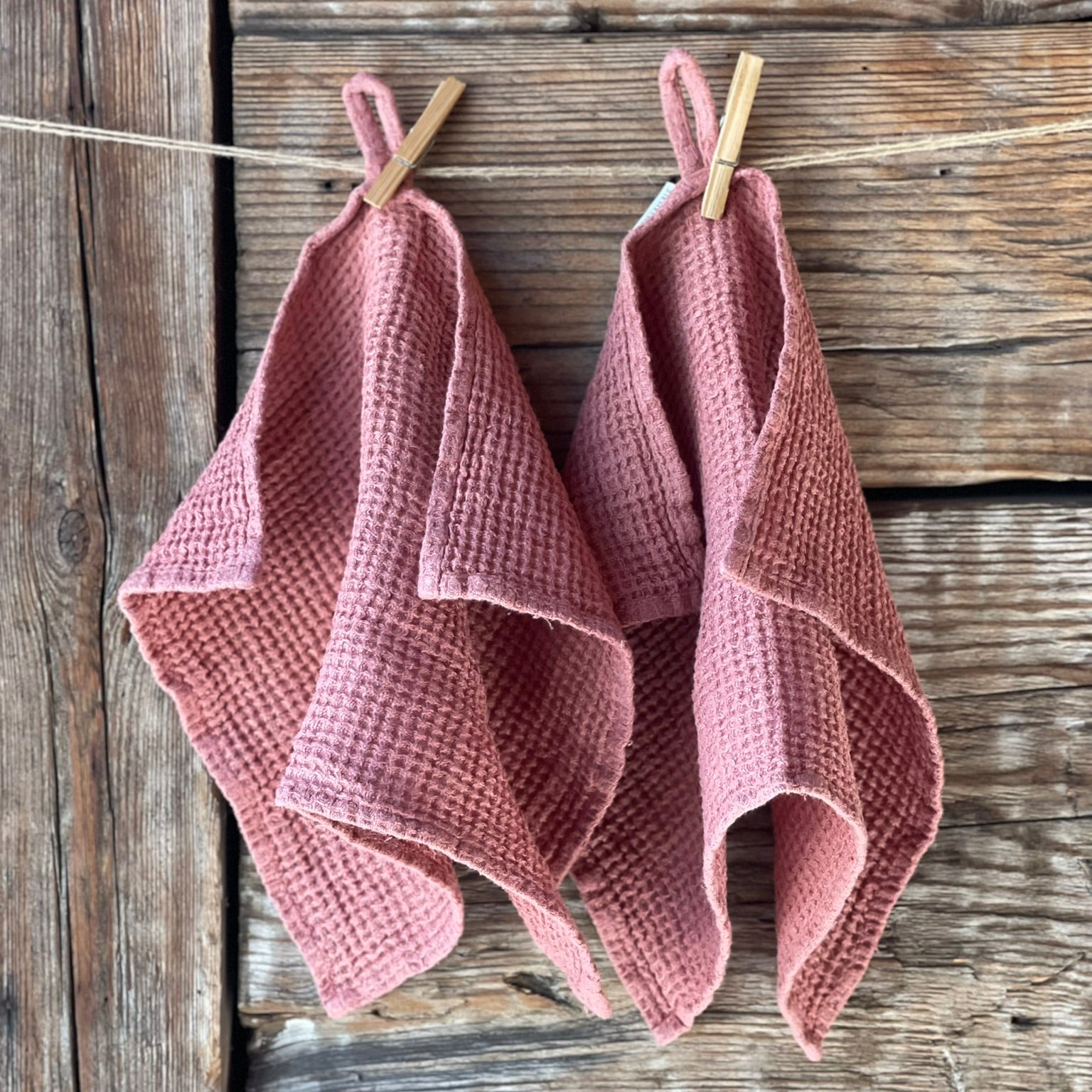 Mīkstināta lina dvielītis maigi rozā toņī ar dabīgi pelēka toņa platu greznu lina mežģīni