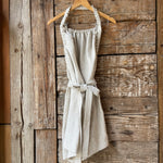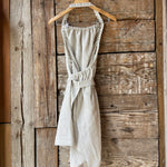 Piena balta/dabīgi pelēka sīki svītrota mīkstināta lina pirts kleita ar sasienamām jostas bantēm
