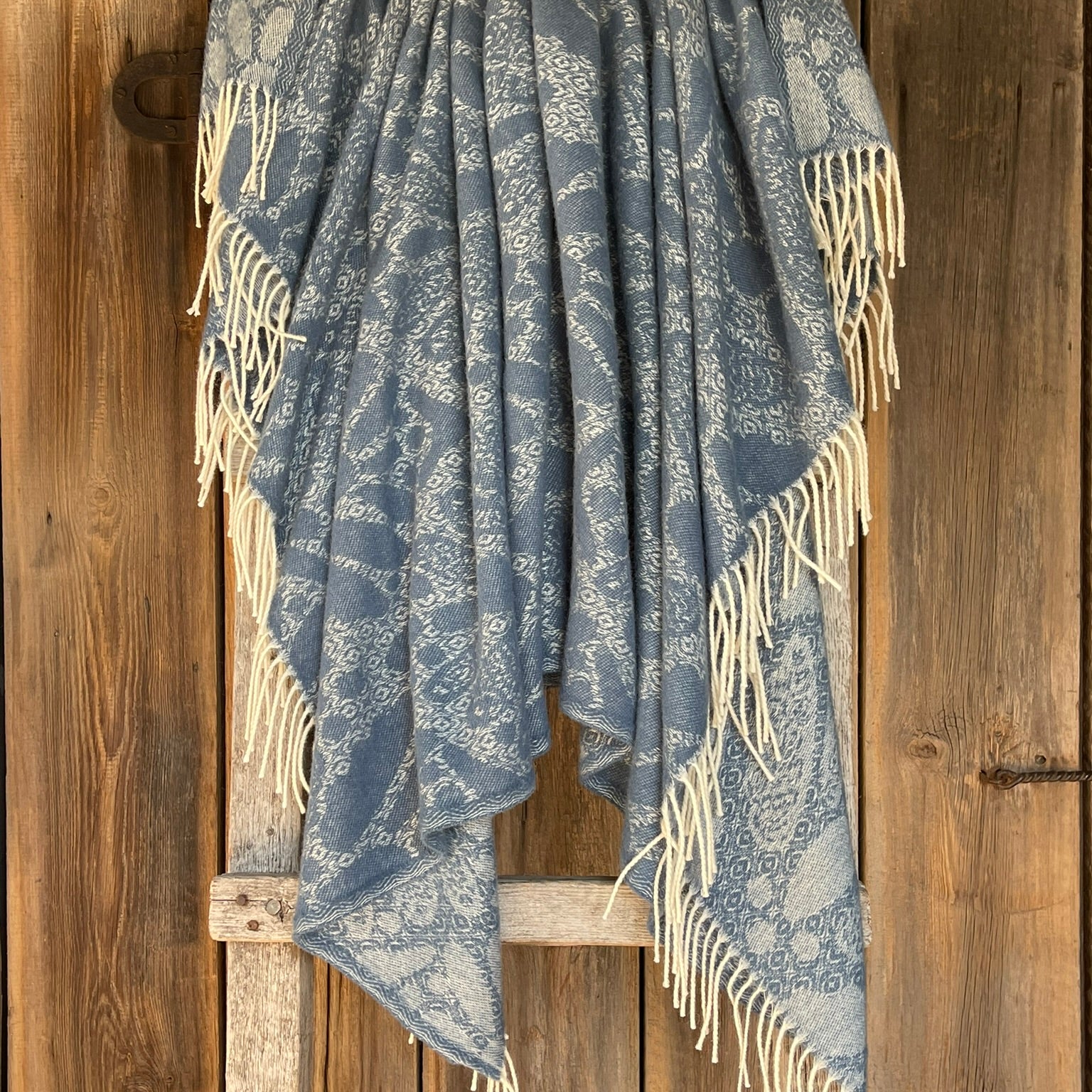 Krēmīgi balts aitas vilnas pleds ar bārkstīm