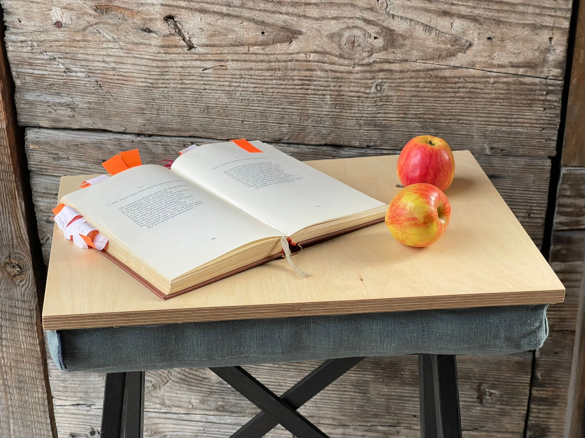 Brokastu paplāte, datora paliktnis, gultas paplāte, dabīgs koks/dabīgi pelēks spilvens