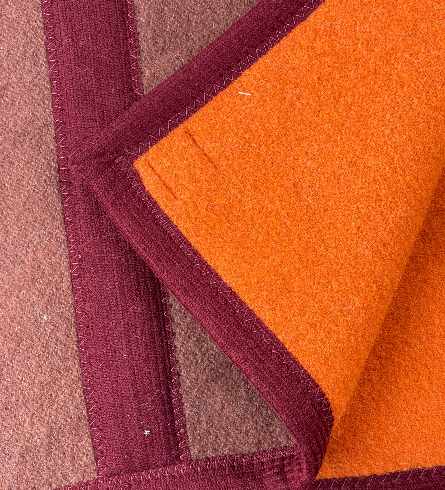 Šokolādes brūna/oranža divguļamā 100% aitas vilnas sega ar tumši brūnām maliņām, divi izmēri: 170x210cm/200x220cm