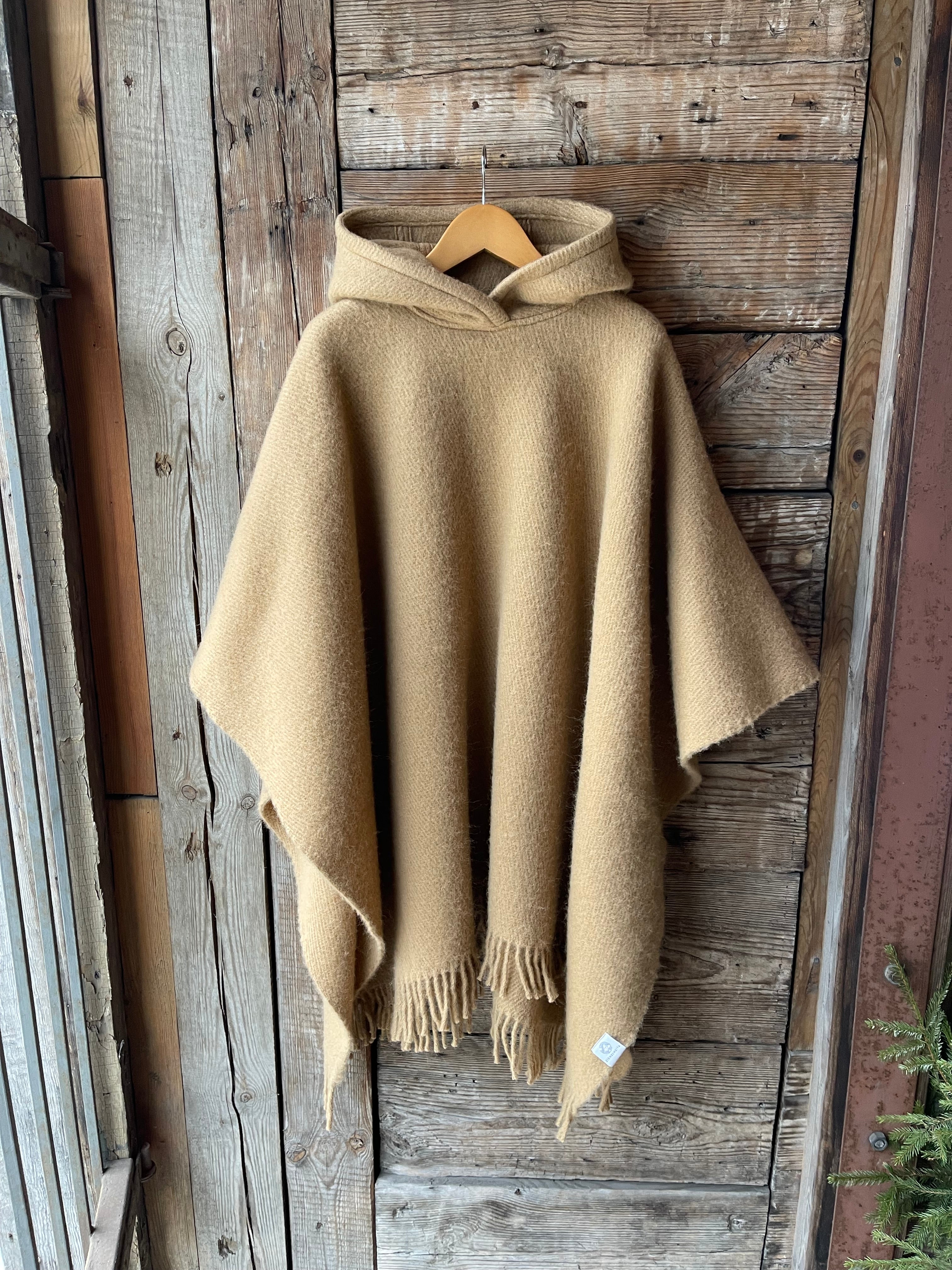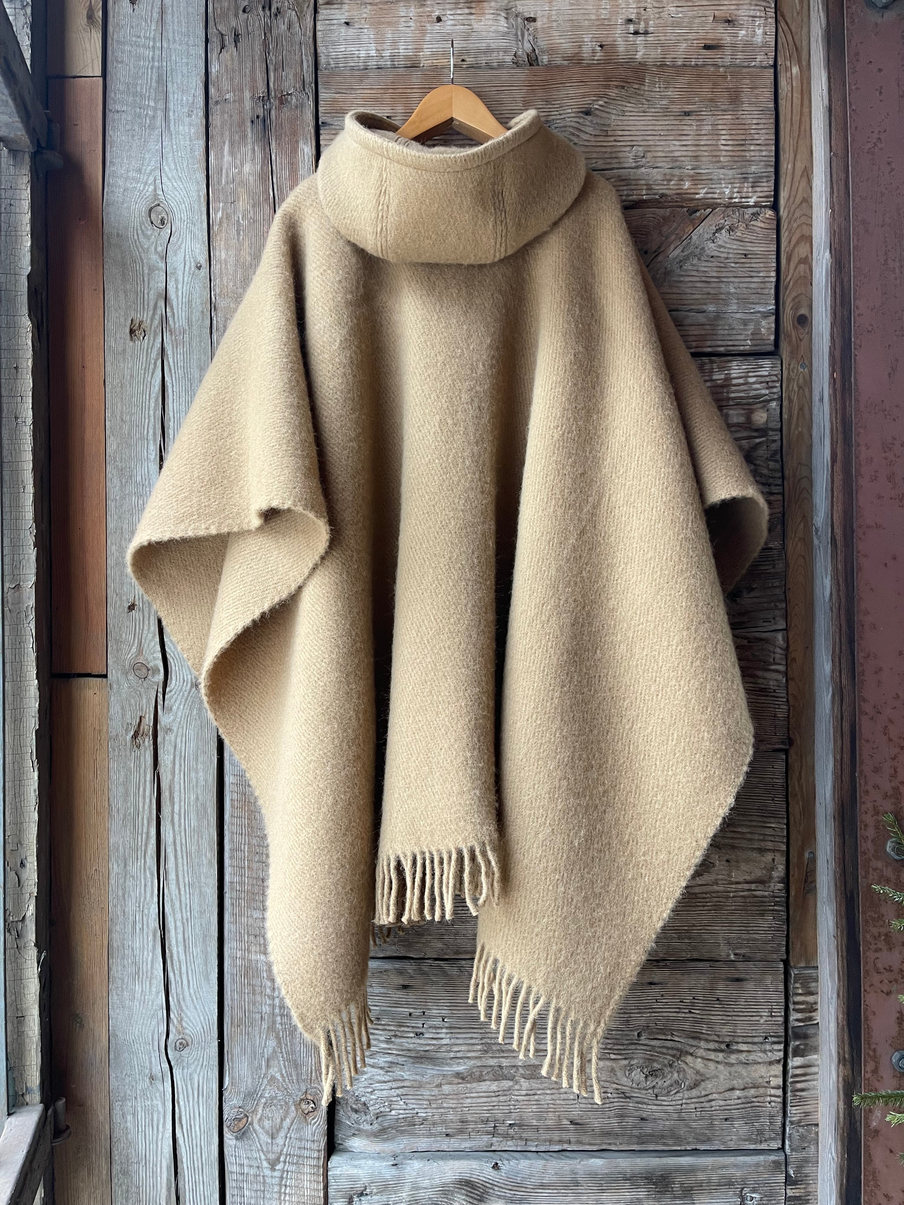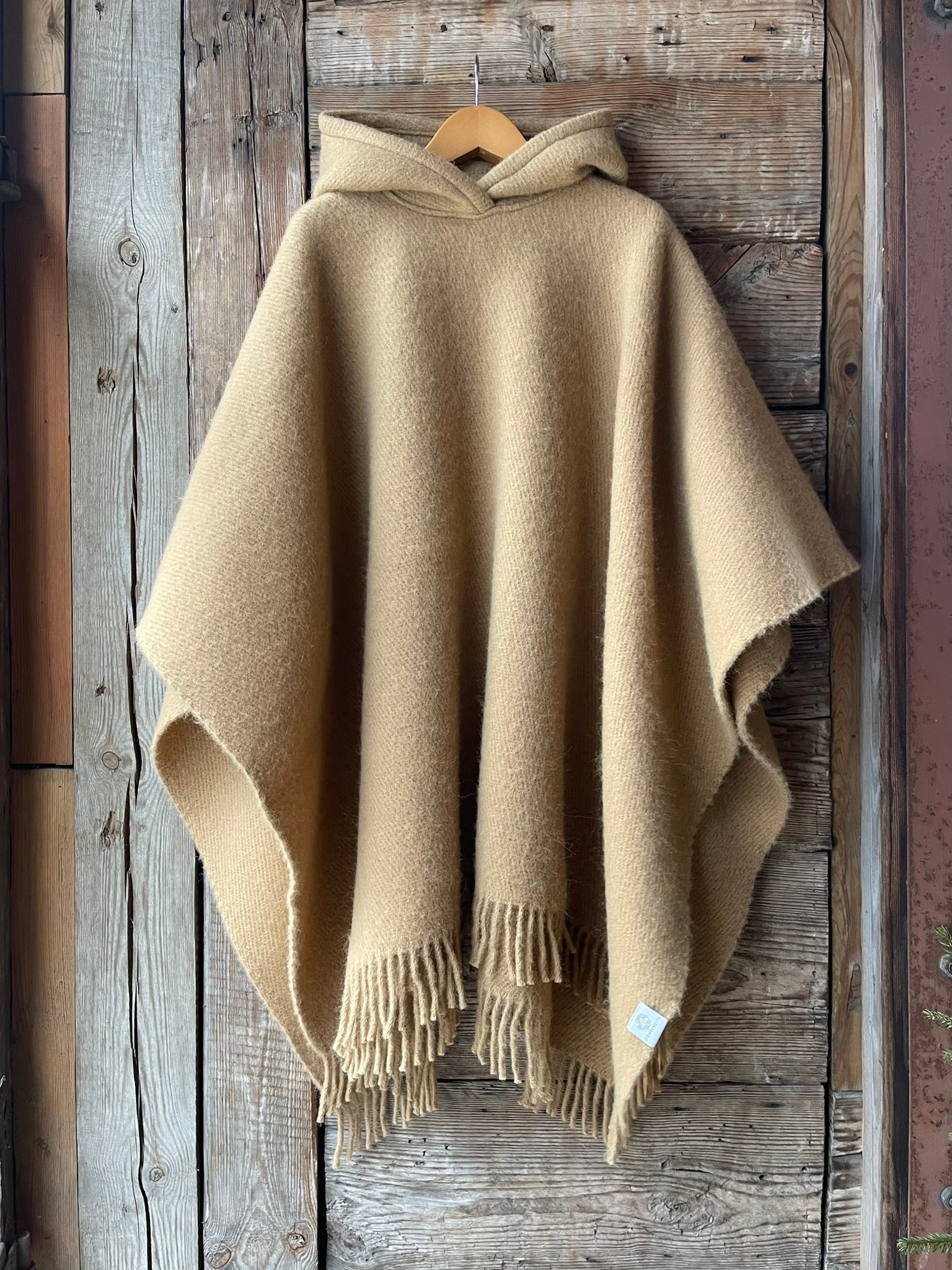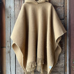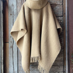 Karameļi brūna toņa indiāņu piegriezuma garais aitas vilnas pončo ar kapuci un bārkstīm