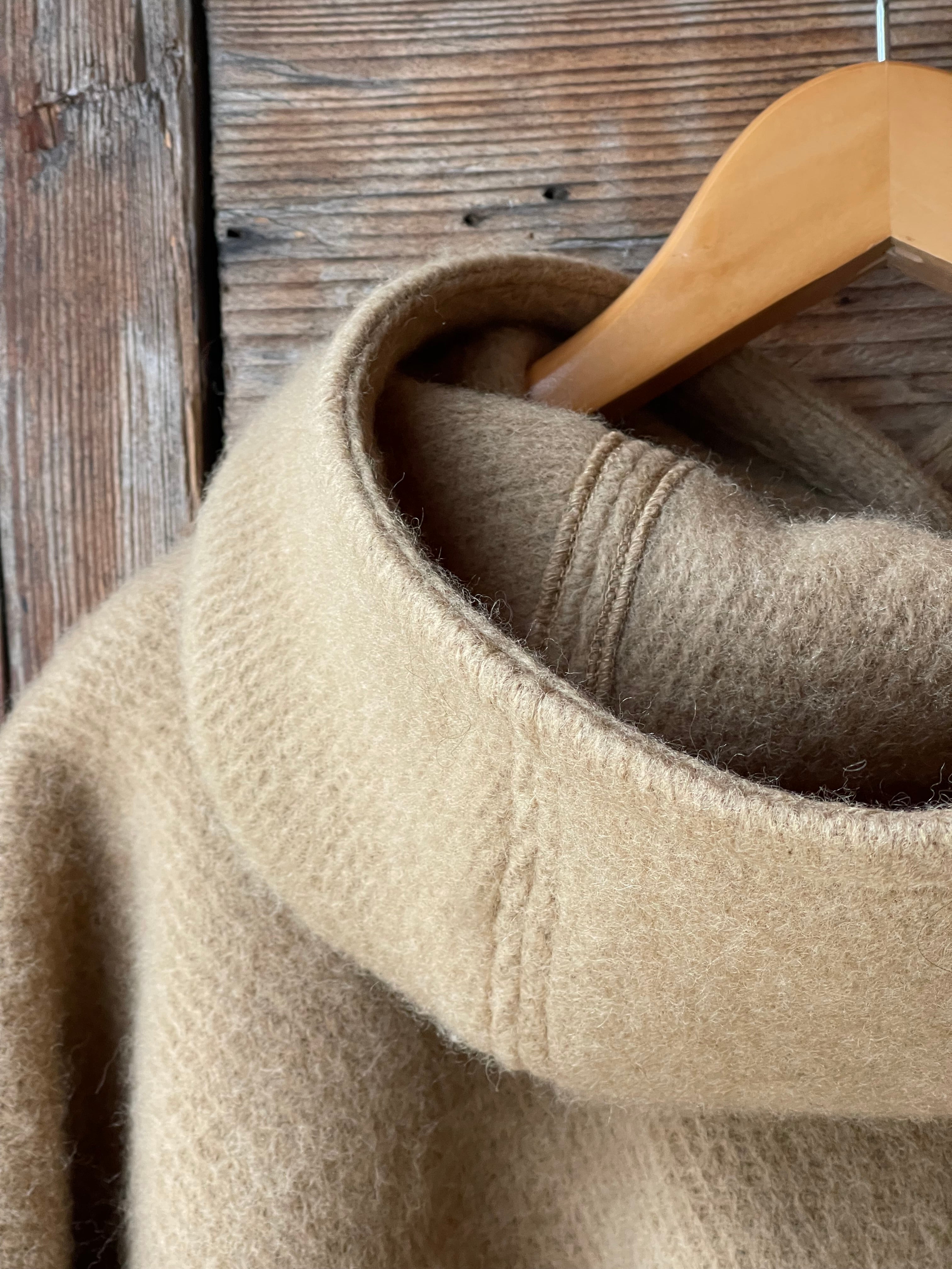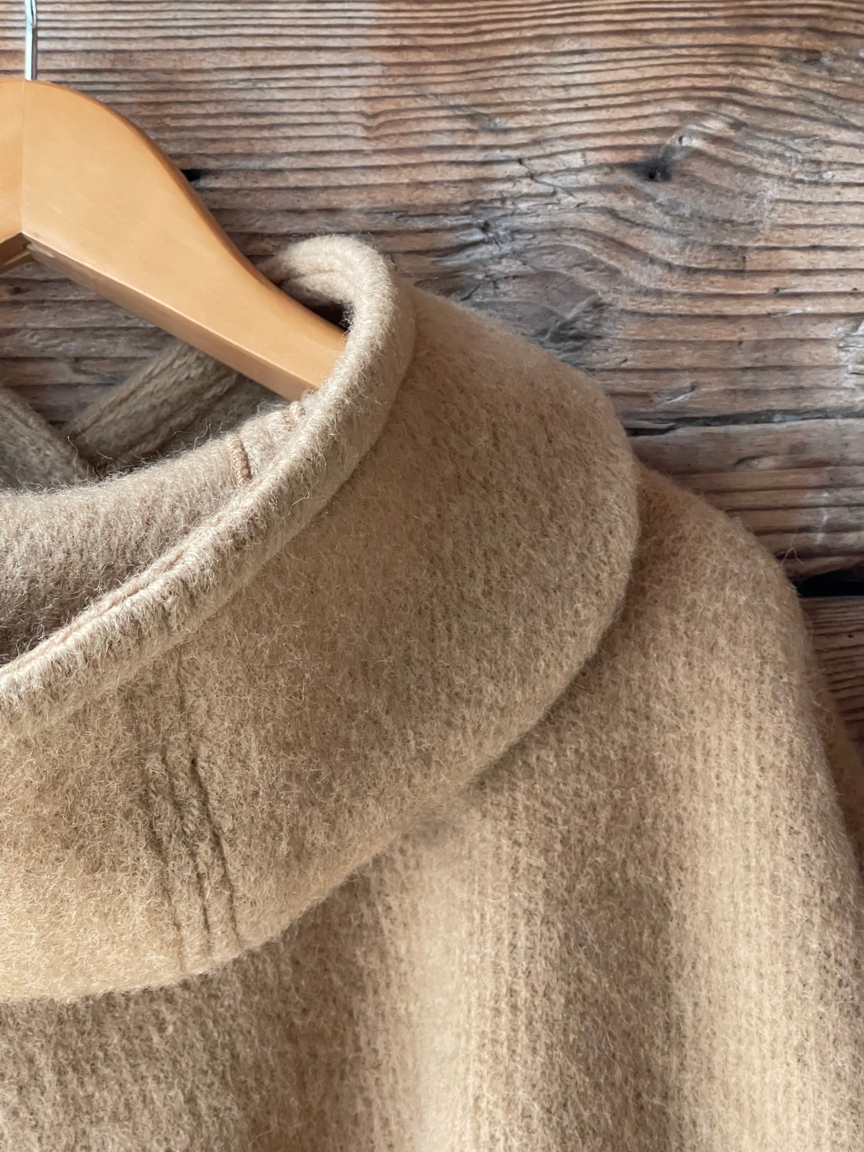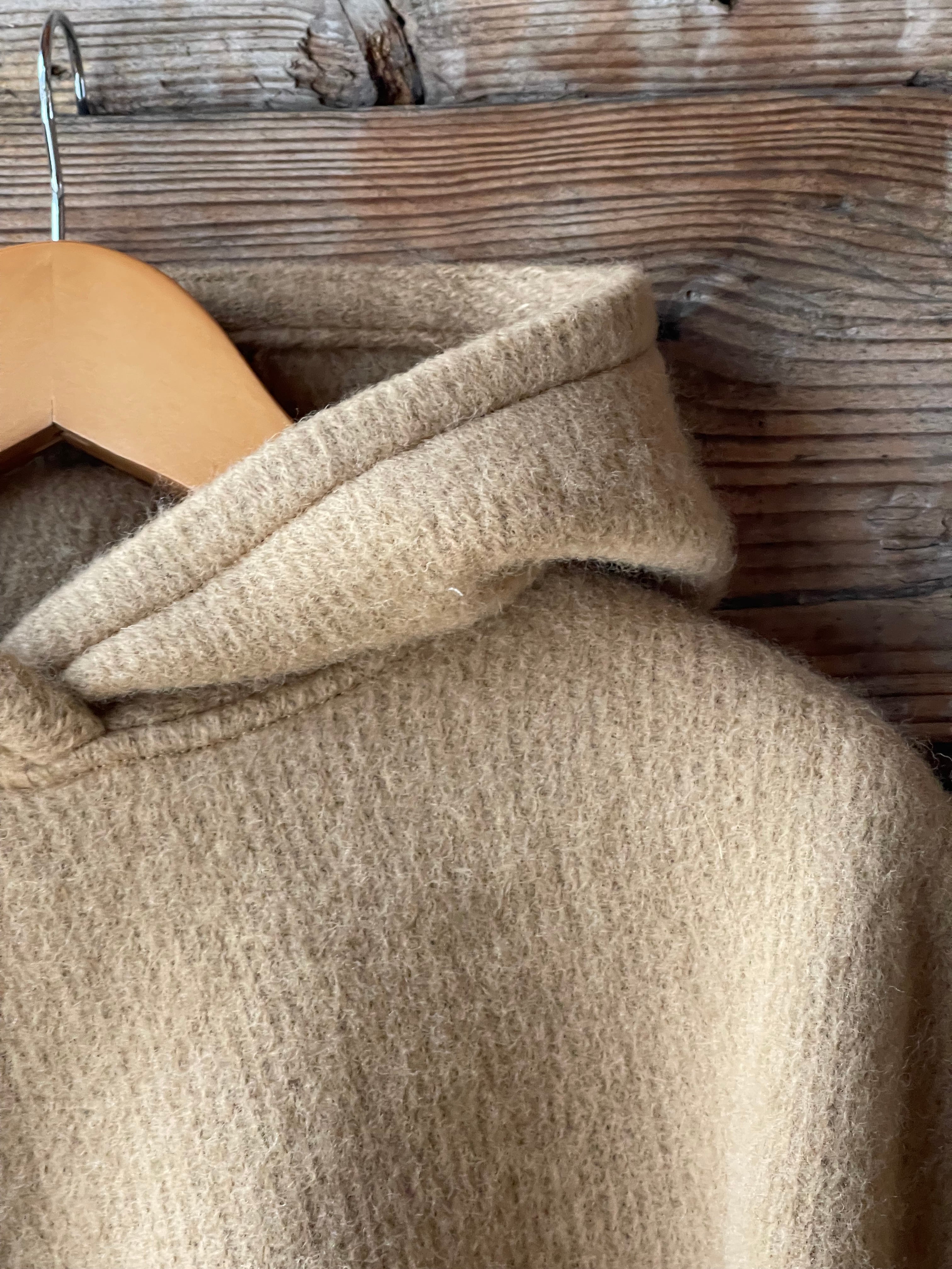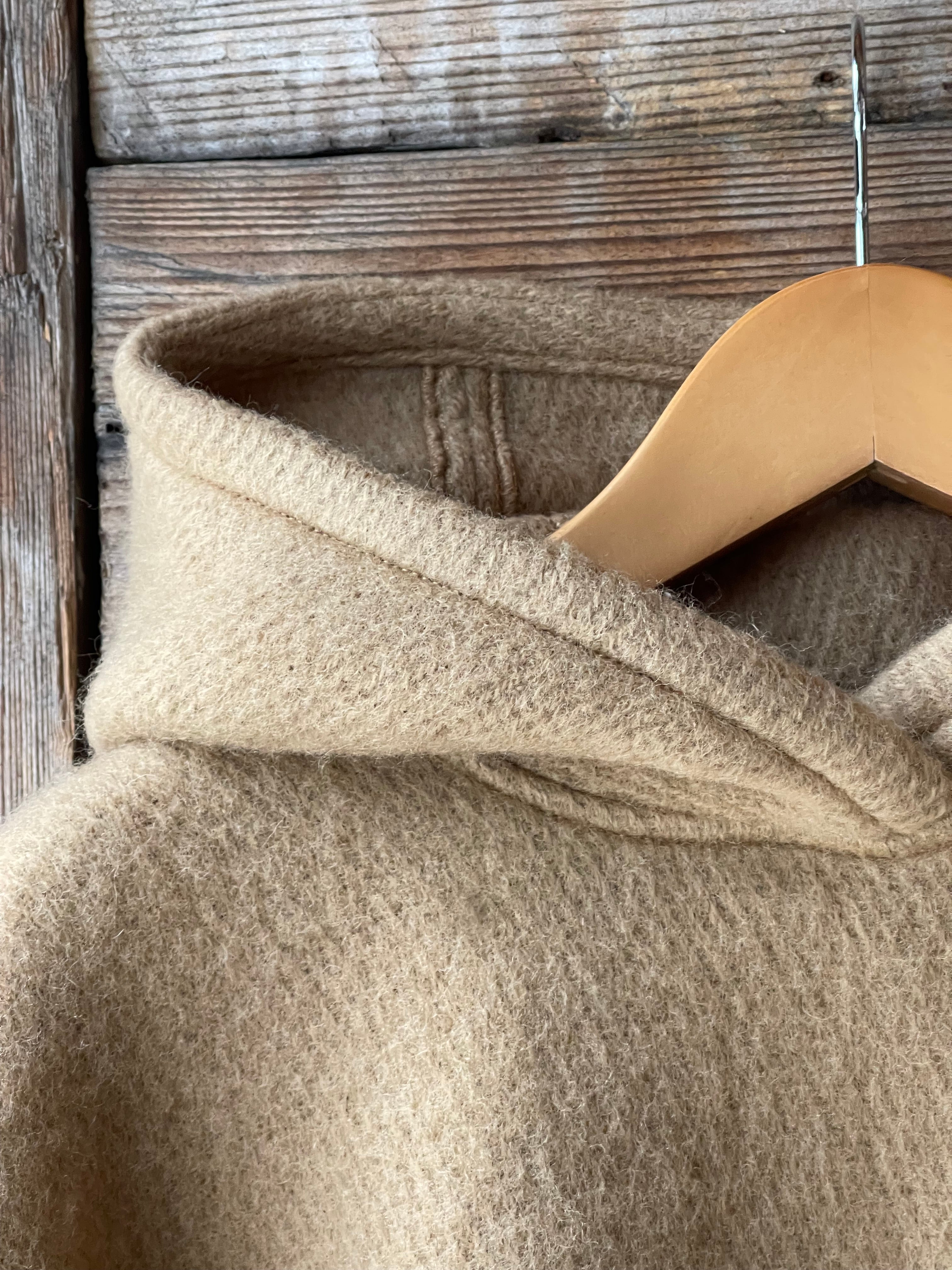 Karameļi brūna toņa indiāņu piegriezuma garais aitas vilnas pončo ar kapuci un bārkstīm