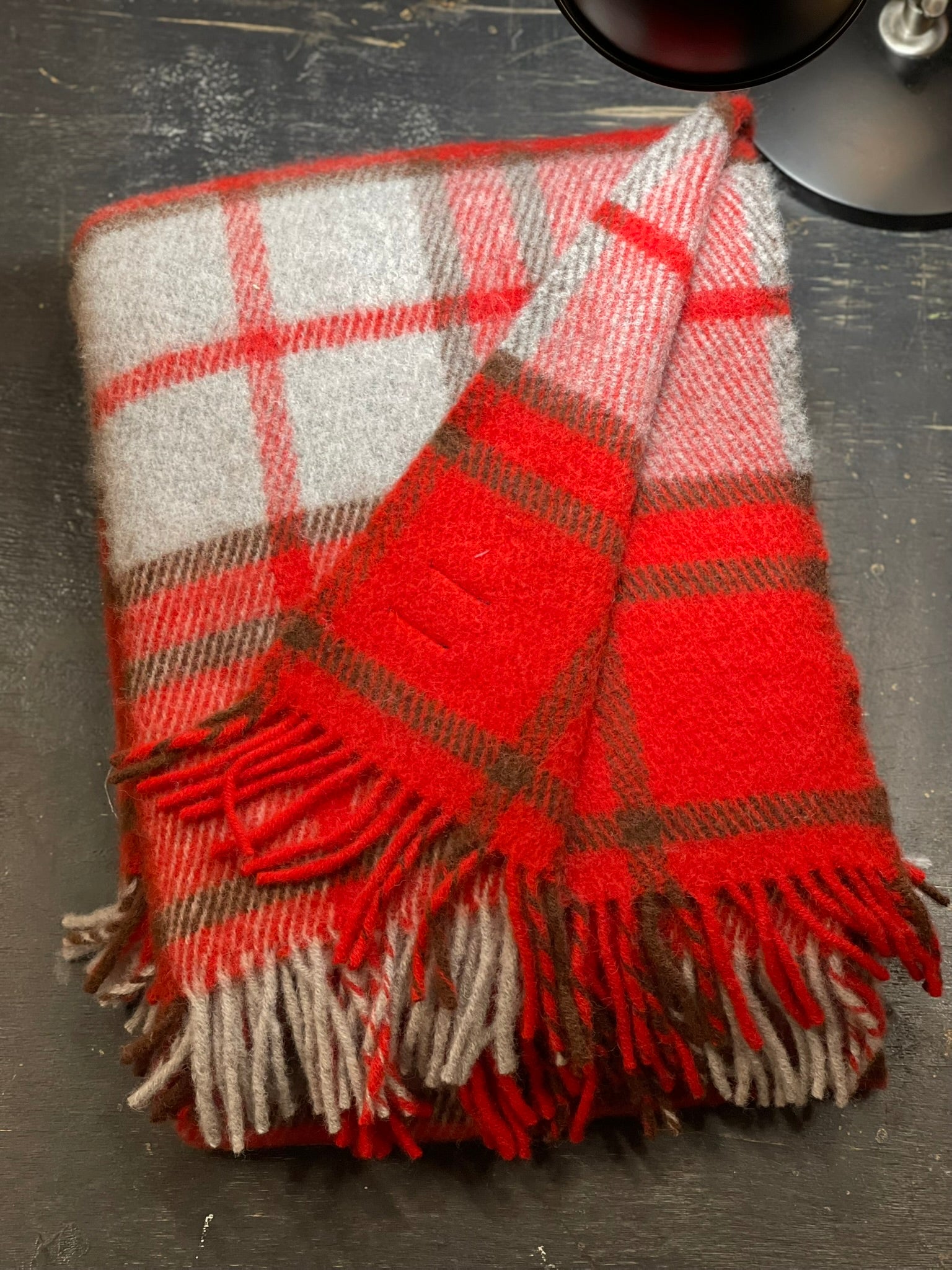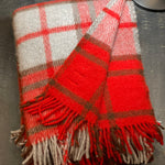 Sarkans/gaiši pelēki klasiski rūtains aitas vilnas pleds, dažādi izmēri